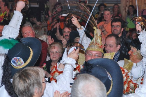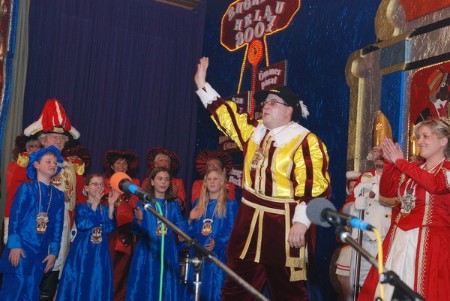 Ordensmarschall Dirk bei seiner Rede Text: Helau ! Mundschenk Rene Text: Helau !
